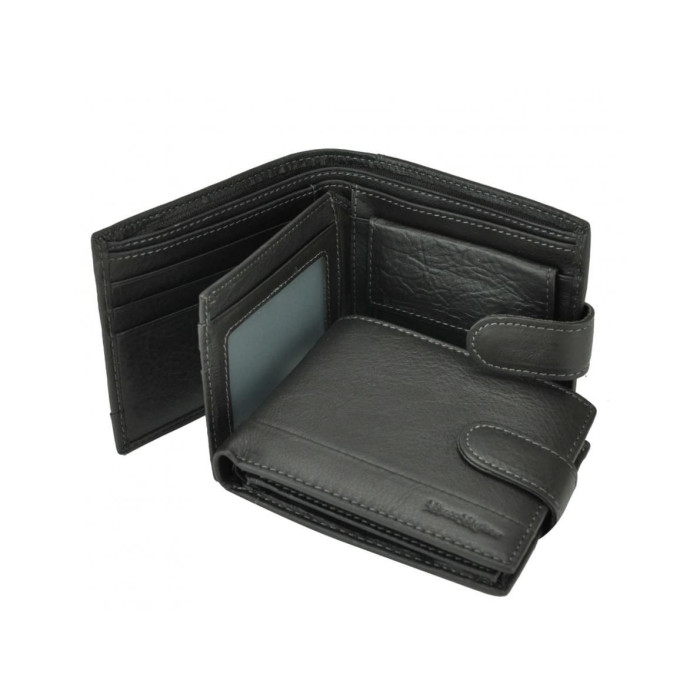 Классическое портмоне в темно-коричневом цвете. Кошелек закрывается на клапан со скрытым магнитом, имеет три отделения для купюр, одно из них закрывается на молнию, множество слотов для пластиковых карт или визиток. Внутри расположена монетница, а также полупрозрачный слот-отсек для водительских прав или пропуска.