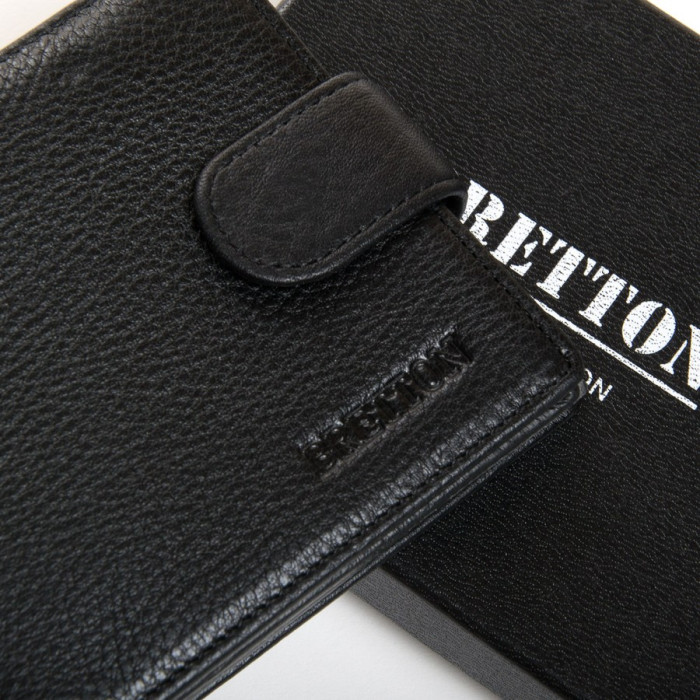 Мужской кожаный кошелек Bretton, серия Black Edition. Изготовлен из мягкой натуральной кожи. Внутри есть 2 открытых и одно на молнии отделения для банкнот, 4 кармана для визитных карт и два кармана.