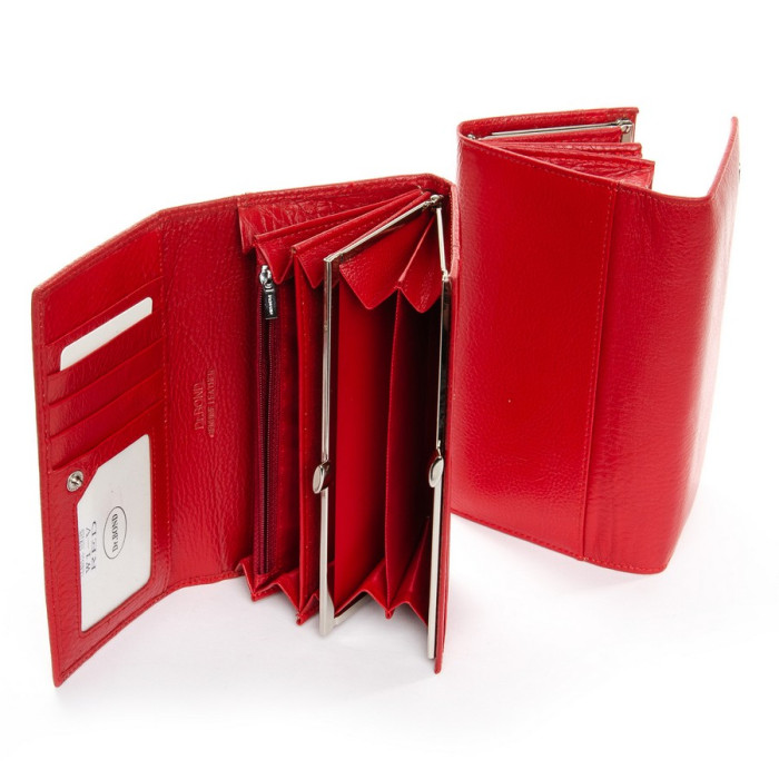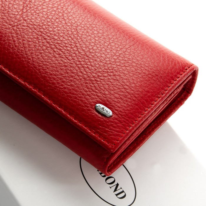 Большой кожаный женский кошелек DR. BOND. Закрывается на кнопку. Внутри находятся три отделения для банкнот, монетница на защелке, большой открытый карман и карман на молнии. Девять карманов для карт и один карман выполнен прозрачным. Снаружи на обратной стороне есть большой открытый карман.