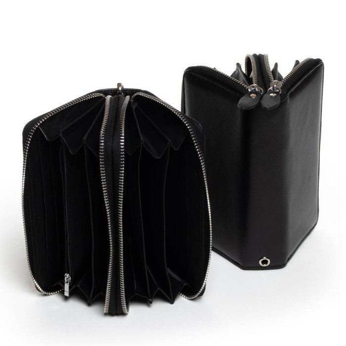Большой женский кошелек-клатч Dr.Bond. Изготовлен из натуральной мягкой кожи с натуральной тестурой. Два отделения, закрываются на молнию. Внутри каждого отделения есть 3 кармана для банкнот. В переднем отделении также находится карман для мелочи на молнии, два больших открытых кармана и 8 карманов для визитных карт. В комплекте кистевой ремешок.
