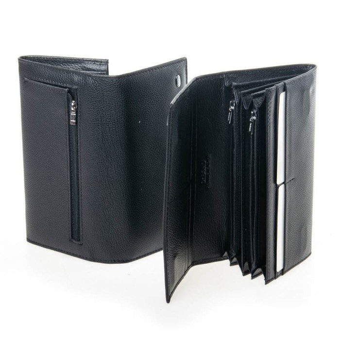 Большой облегченный женский кошелек Dr.Bond. Изготовлен из натуральной мягкой кожи с естественной текстурой. Закрывается на скрытый магнит. Внутри находятся 4 отделения для банкнот, два кармана-монетницы на молнии, большой открытый карман и 10 карманов для карт и визиток. Снаружи кошелька на обратной стороне есть карман на молнии. Размер (см) 18,5*9*3,5