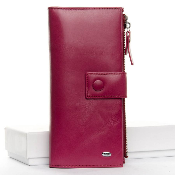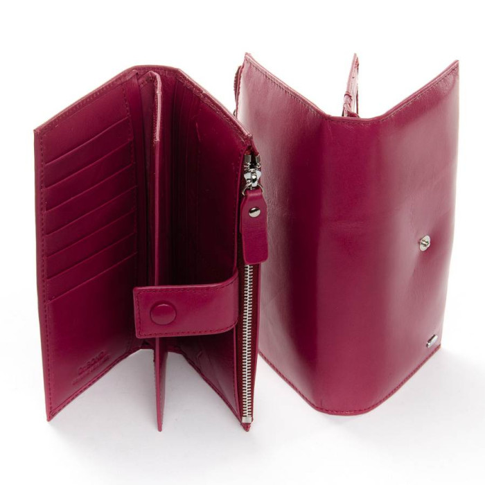 Большой кожаный кошелек Dr.Bond. Изготовлен из мягкой натуральной кожи. Основное отделение закрывается клапаном на кнопке. Внутри находятся 19 карманов для визитных карт и 5 больших открытых кармана. Отделение для банкнот находится снаружи кошелька и закрывается на молнию.