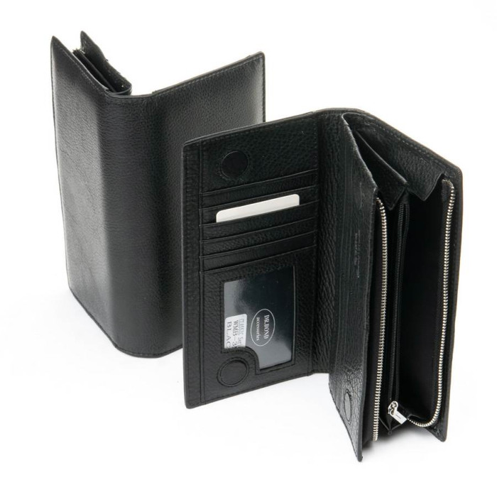 Большой кожаный кошелек Dr.Bond. Изготовлен из мягкой натуральной кожи. Переднее отделение закрывается на магнитные кнопки. Внутри находятся 12 карманов для визитных карт и один большой открытый карман. Двойное отделение для банкнот с карманом-монетницей на молнии, закрывается на общую молнию.