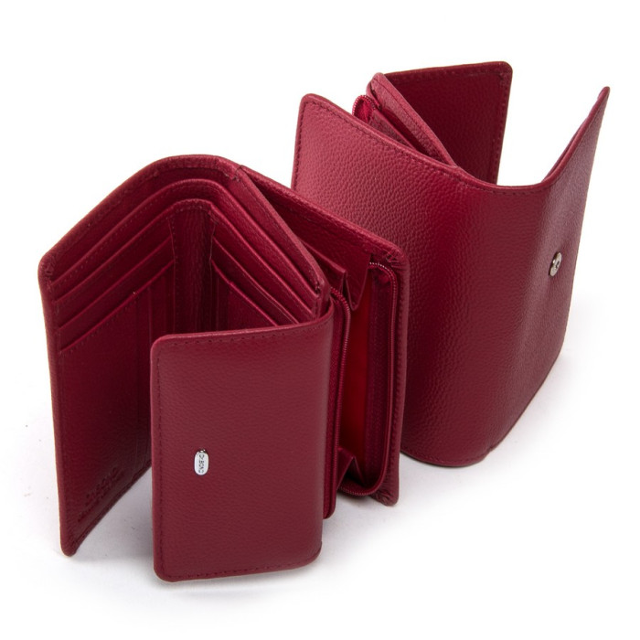 Женский кошелек Dr.Bond. Изготовлен из натуральной мягкой кожи с естественной текстурой. Основное отделение закрывается клапаном на кнопке. Внутри находится два открытых отделения для банкнот разделенные кожаной перегородкой, 9 карманов для визитных карт и 2 больших кармана. Снаружи кошелька на обратной стороне находится двойная монетница на молнии.