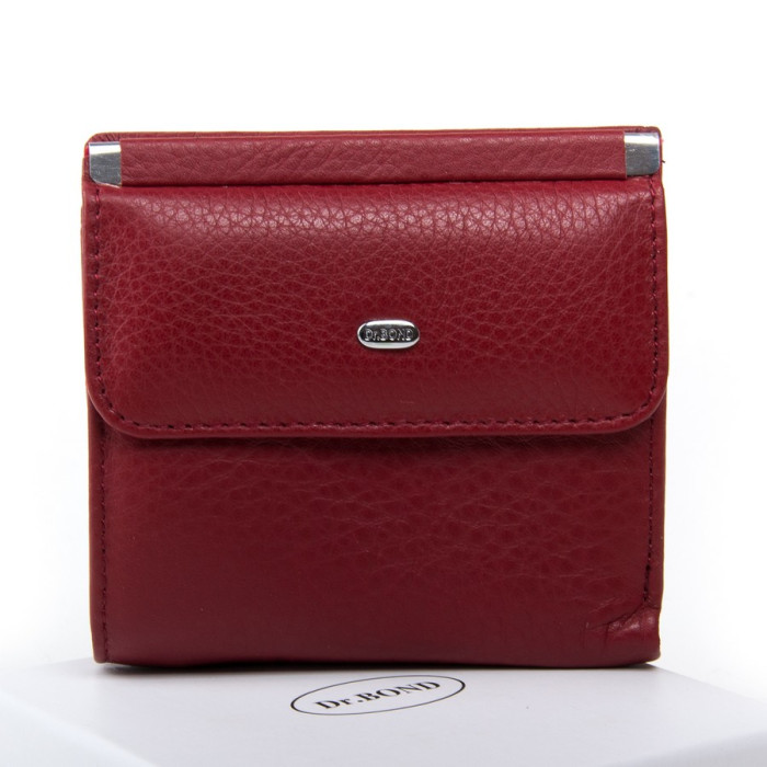 Женский кошелек Dr.Bond. Изготовлен из натуральной мягкой кожи с естественной текстурой. Основное отделение закрывается на магнит. Внутри находится одно открытое и одно на молнии отделения для банкнот, разделенные кожаной перегородкой, 4 карманов для визитных карт и 1 прозрачный карман. Снаружи кошелька на фасаде находится двойная монетница на кнопке.