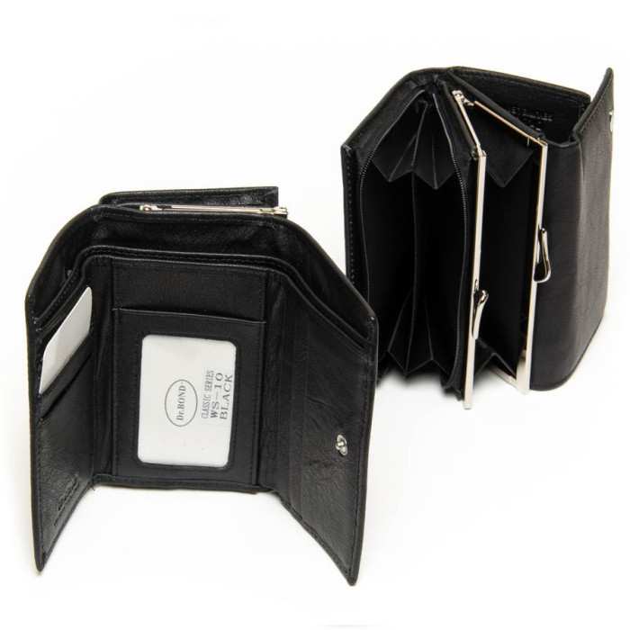 Женский кошелек Dr.Bond. Изготовлен из мягкой натуральной кожи. Основное отделение закрывается на кнопку и складывается втрое. Внутри есть два открытых отделения для банкнот и одно на молнии, 4 карманов для визитных карт и 5 больших карманов. Снаружи кошелька находится монетница на защелке и двойное отделение на молнии.