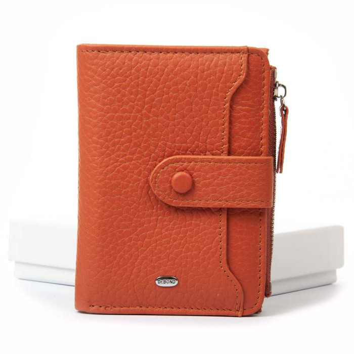 Женский кошелек Dr.Bond. Изготовлен из натуральной мягкой кожи. Закрывается клапаном на кнопке. Внутри находятся одно открытое отделение для банкнот, 6 карманов для карт и 2 больших кармана. Снаружи кошелька есть монетница на молнии, открытый карман на фасаде и небольшой карман на молнии на обратной стороне.