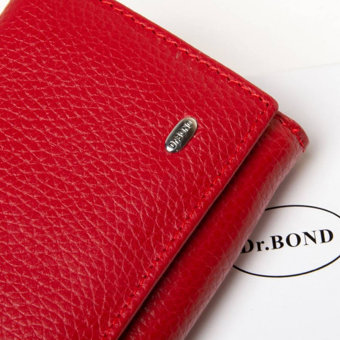 Женский кошелек DR. BOND. Изготовлен из мягкой натуральной кожи. Основное отделение закрывается на кнопку и складывается втрое. Внутри есть два открытых отделения для банкнот и одно на молнии, 4 карманов для визитных карт и 5 больших карманов. Снаружи кошелька находится монетница на защелке и двойное отделение на молнии.