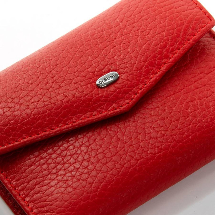 Компактный женский кошелек DR. BOND. Изготовлен из мягкой натуральной кожи. Закрывается клапаном на кнопку и складывается вдвое. Внутри есть одно открытое отделение для банкнот, монетница на молнии, 5 карманов для визитных карт и 2 больших кармана.