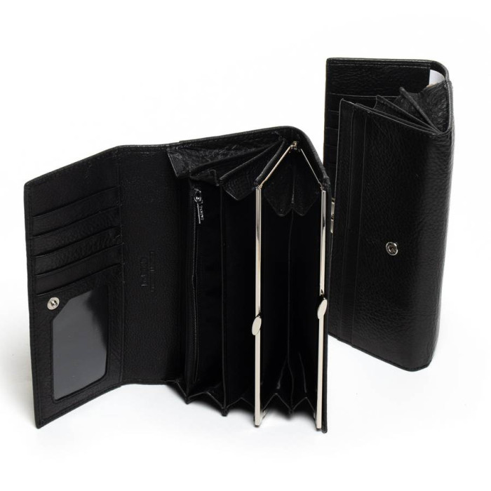 Большой кожаный женский кошелек Dr.Bond. Внутри три отделения для банкнот, монетница на защелке, большой открытый карман и карман на молнии. Девять карманов для карт, один карман выполнен прозрачным. Снаружи на обратной стороне большой открытый карман. Размер(см) 18,5*9,5*3,5.