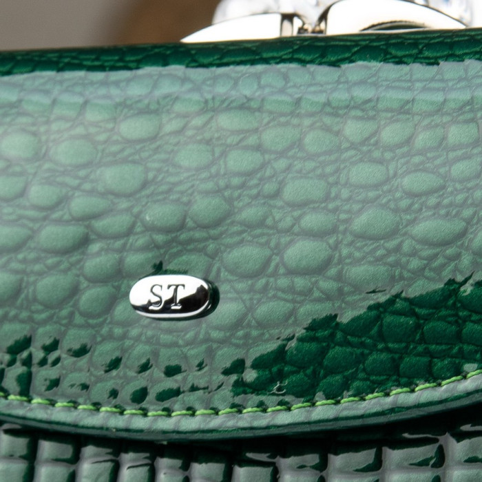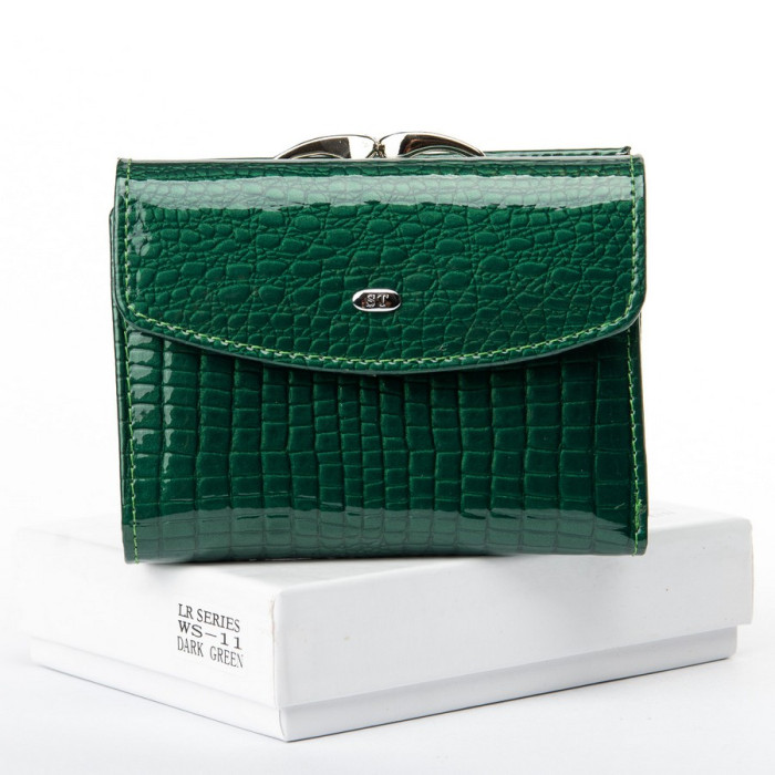 Женский компактный кожаный кошелек Sergio Torretti. Наружная часть - лаковая кожа, внутренняя часть - натуральная мягкая кожа. Основное отделение закрывается на кнопку. Внутри находятся 2 открытых отделения для банкнот, разделены кожаной перегородкой. Также 4 кармана для визитных карт, один из которых прозрачный. Снаружи кошелька, на обратной стороне, расположена двойная монетница на защелке.