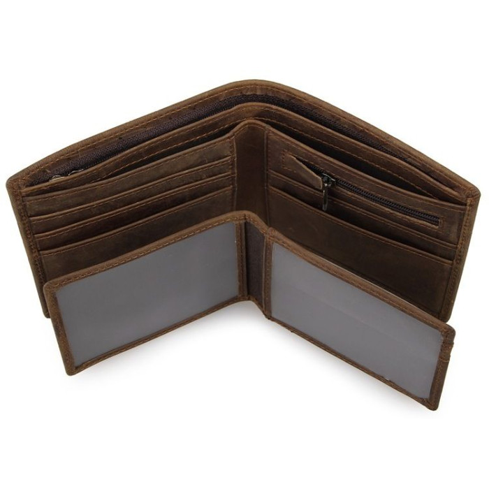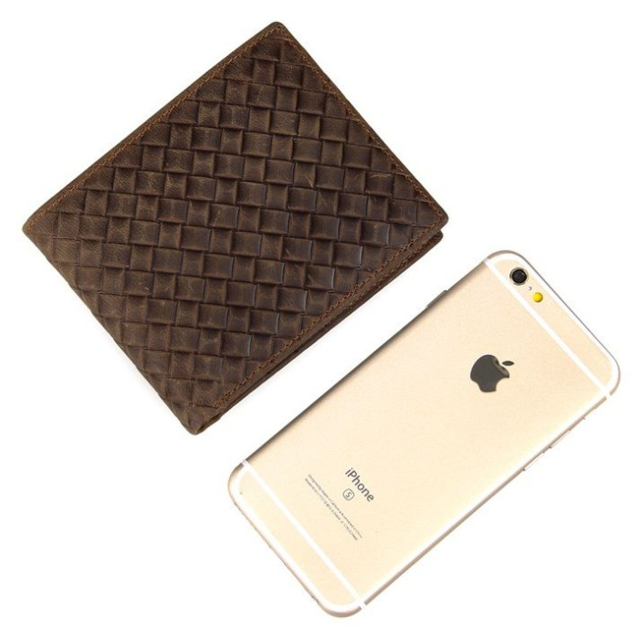 Отличный мужской бумажник из натуральной высококачественной натуральной кожи. Внешняя сторона аксессуара украшена тесненным декоративным рисунком. Цвет фурнитуры: латунь. Кошелек аккуратно прошит светло-коричневой нитью. Бумажник упакован в текстильный пылезащитный чехол белого цвета.