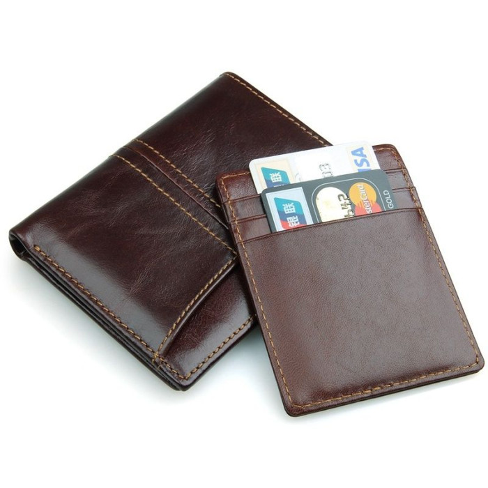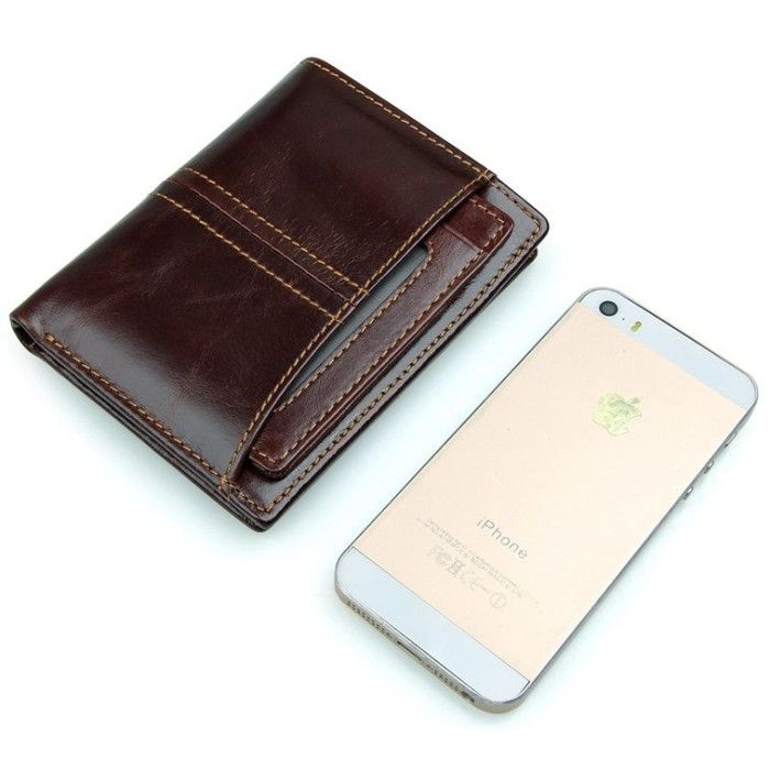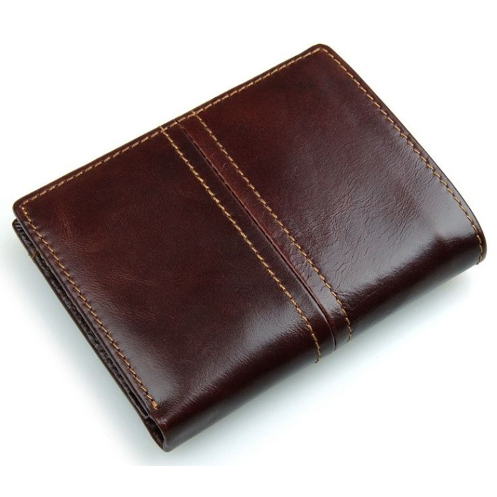 Современный мужской кожаный бумажник коньячного цвета. Кожа имеет легкий, едва заметный глянец. Аксессуар аккуратно прошит сверхпрочной нитью светло-коричневого цвета. На лицевой стороне расположен накладной карман. Вместе с кошельком поставляется кожаная кредитница. Ее можно использовать как отдельный аксессуар. Кошелек упакован в пылезащитный текстильный мешочек.