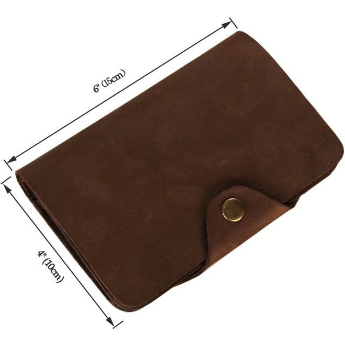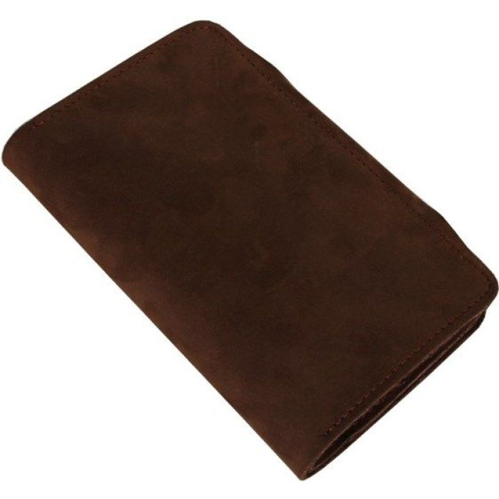 Вместительный мужской кошелек из добротной винтажной кожи, для которой характерны неоднородность окраса и потертости, которые придают изделию изысканного вида. Своим дизайном он подчеркивает стиль и вкус обладателя данного кошелька. Аксессуар закрывается на кнопку, прошит прочной коричневой нитью, упакован в текстильный пылезащитный чехол белого цвета.