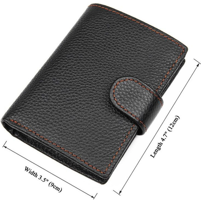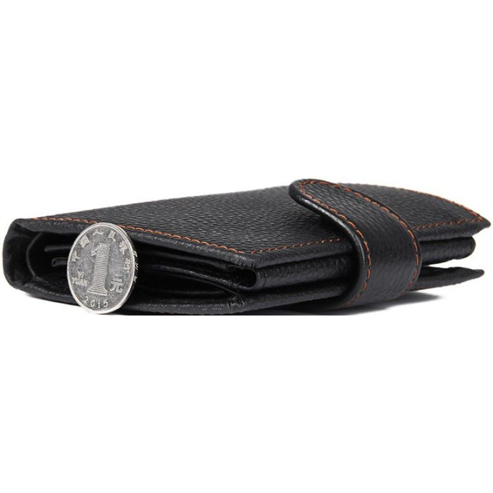 Вертикальный мужской кошелек черного цвета. Аксессуар выполнен из натуральной высококачественной фактурной кожи приятной на ощупь. Бумажник аккуратной прошит светло-коричневой нитью, что придает ему изюминку. Цвет фурнитуры: латунь. Изделие упаковано в текстильный пылезащитный мешочек белого цвета.