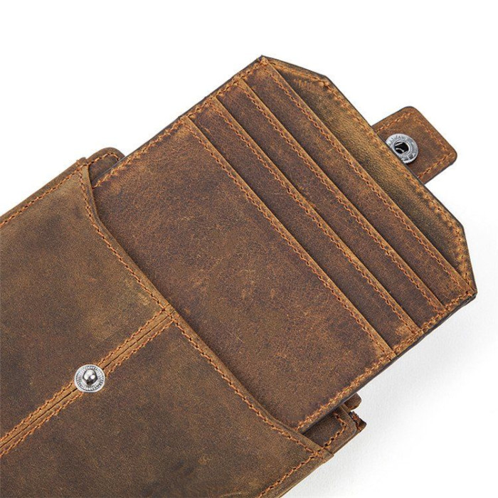 Качественный кошелек с эффектом старины, смотрится очень стильно и аристократично. Подойдет для любителей носить с собой много карточек. Аксессуар застегивается на хлястик с кнопкой. Модель небольшого размера и поместится в небольшую сумку. Носятся аксессуары из такой кожи очень хорошо. Такой кошелек добавит изюминку в ваш образ и станет прекрасным дополнением к вашему стилю. Аксессуар упакован в тканевой чехол, что защищает его от попадания пыли и различных загрязнений. Может быть прекрасным подарком для близкого человека.