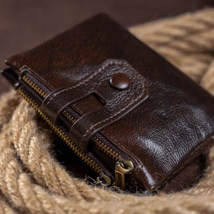 Великолепный кошелек кофейного цвета. Главным отличием данной модели является функциональность и при этом компактность. Цвет фурнитуры: латунь. Кошелек изготовлен из натуральной высококачественной кожи.