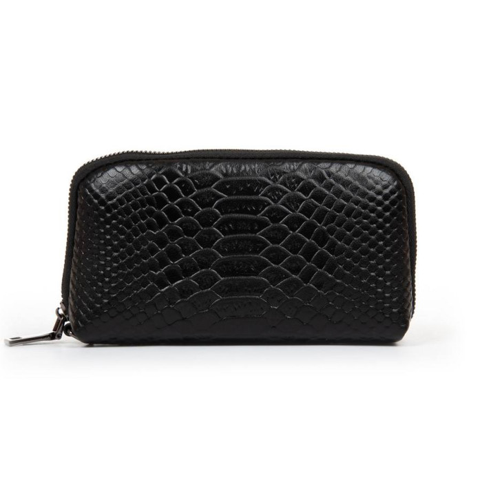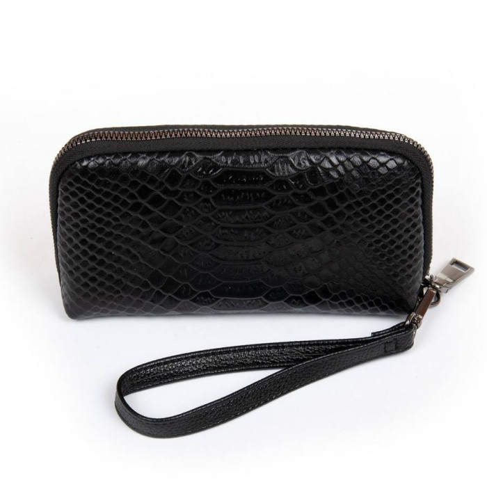 Женская кожаная косметичка. Закрывается на молнию. Внутри находится двойное отделение, разделенное карманом-перегородкой на молнии и боковой открытый карман.
