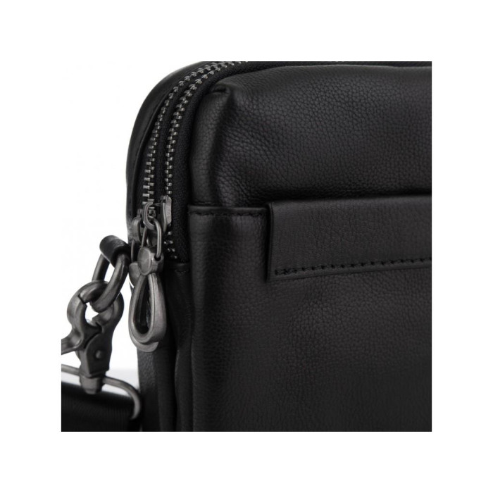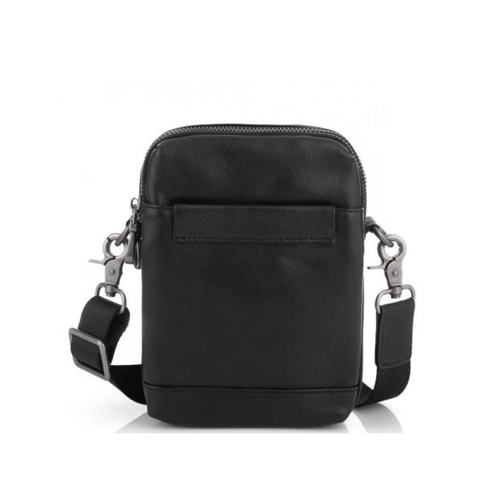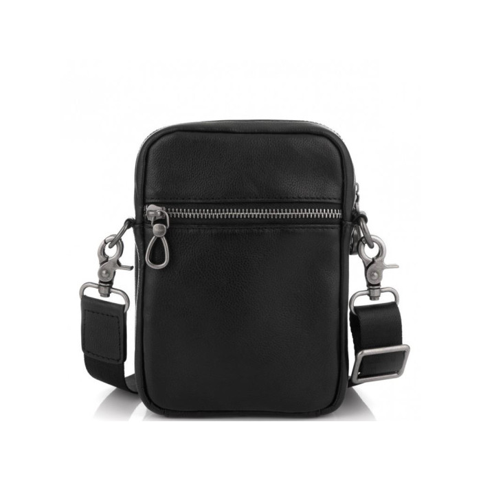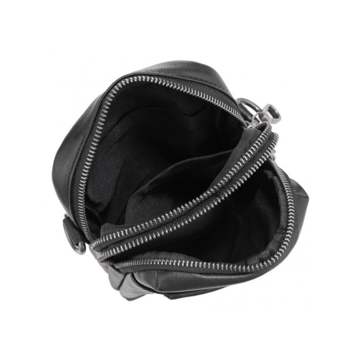 Компактная кожаная сумка для мелочей. Для носки есть съемный текстильный ремень. Фурнитура темно-серебряного цвета, надежная. Сумка имеет два основных отделения, одно чуть больше в нем есть два дополнительных кармана открытого типа. С лицевой стороны карман на потайном магните открытого типа, с тыльной стороны карман на молнии.