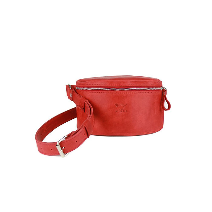 Кожаная поясная сумка красная - TW-BeltBag-red-ksr The Wings