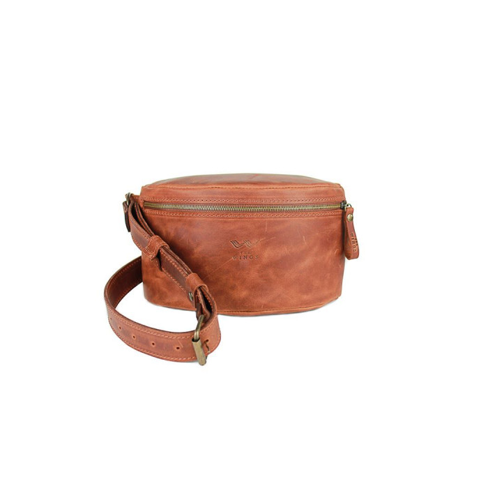 Кожаная поясная сумка светло-коричневая винтажная - TW-BeltBag-kon-crz The Wings