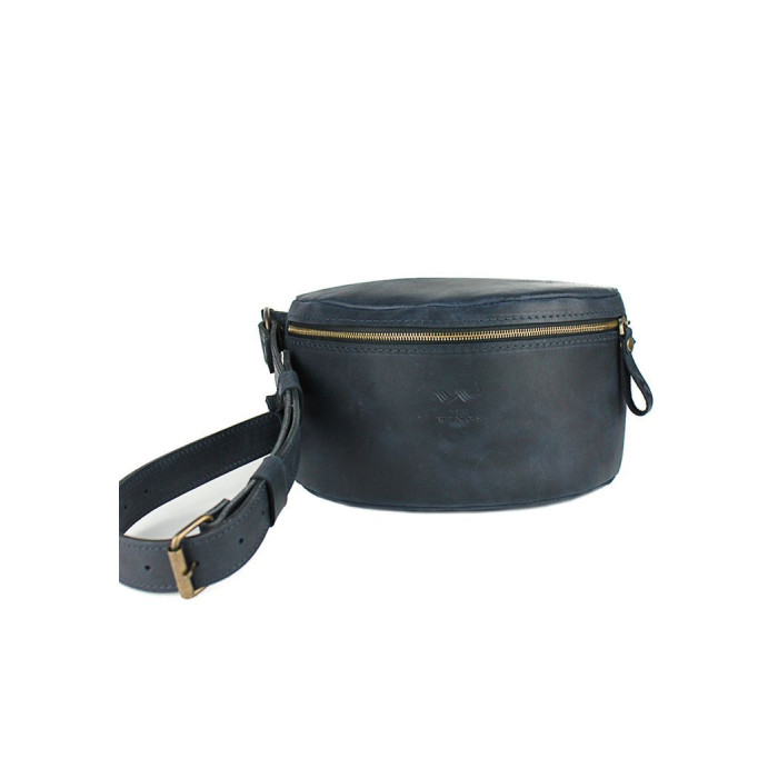 Кожаная поясная сумка темно-синяя винтажная - TW-BeltBag-blue-crz The Wings