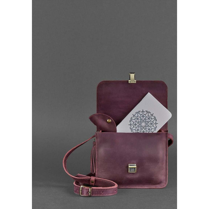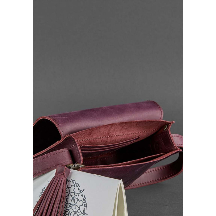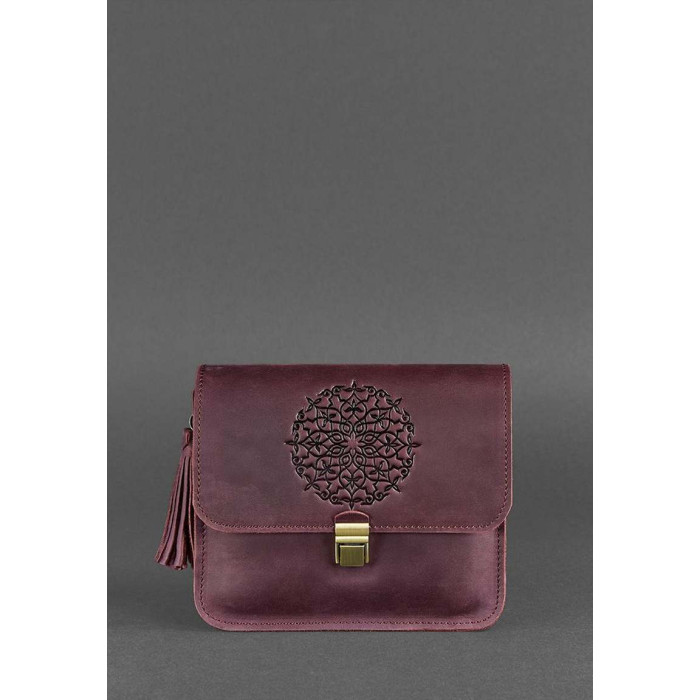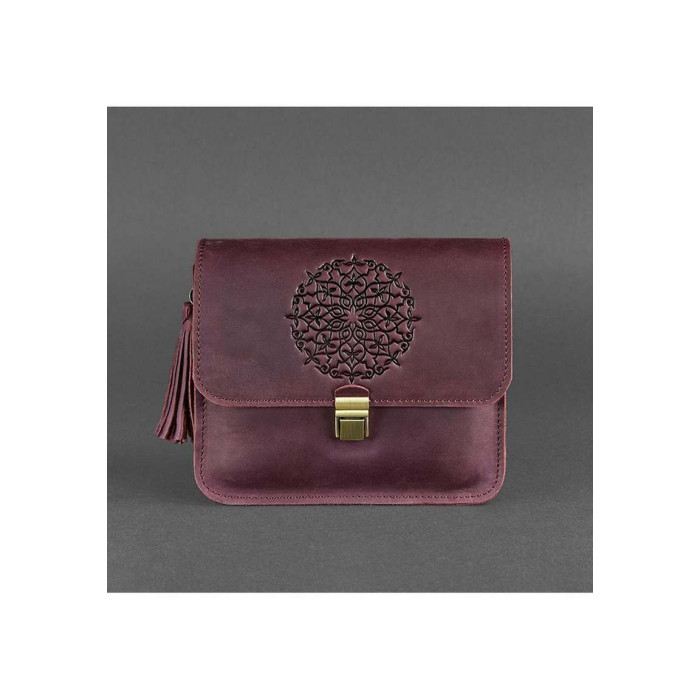 Очень стильное тиснение в виде индийской мандалы украшает клапан сумки. А приятный бордовый цвет дарит нотку благородства и изысканности аксессуару. С такой сумочкой Вы всегда будете в центре внимания.