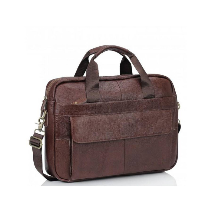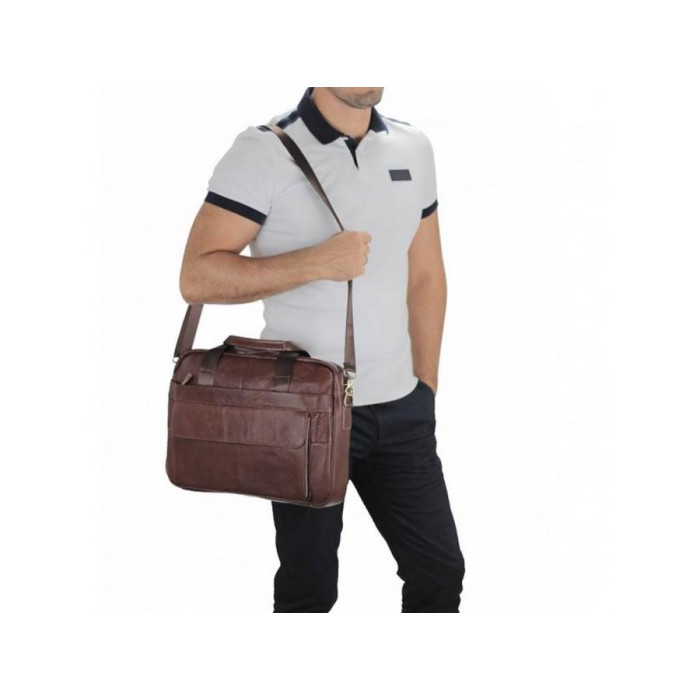 Мужская сумка от Bexhill изготовлена из прочной кожи. Надежно вшитые ручки с эргономичными вставками для максимально комфортного ношения в руке. Съемный наплечный ремень регулируется по длине. Сумка имеет одно основное отделение. С лицевой стороны карман на молнии и карман с клапаном на магнитных кнопках. С тыльной стороны карман на молнии. Внутри сумки карман для ноутбука на липучке, карман на молнии и два кармана открытого типа.