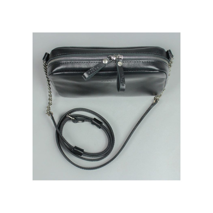 Размер: 13х22х6 Метериал: кожа, тканевый подклад Застегивается на молнию Внутри: - 1 карман на молнии - 1 обычный карман - 1 большое отделение Фурнитура: металлическая, цвет никель Шлейка несъемная – цепочка и кожаная вставка (возможен вариант сделать полностью кожаную)