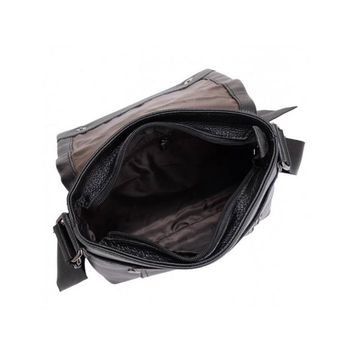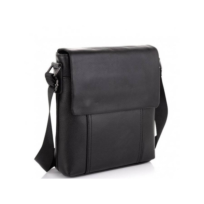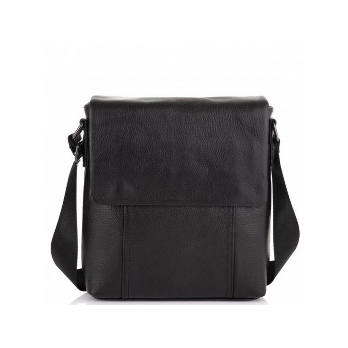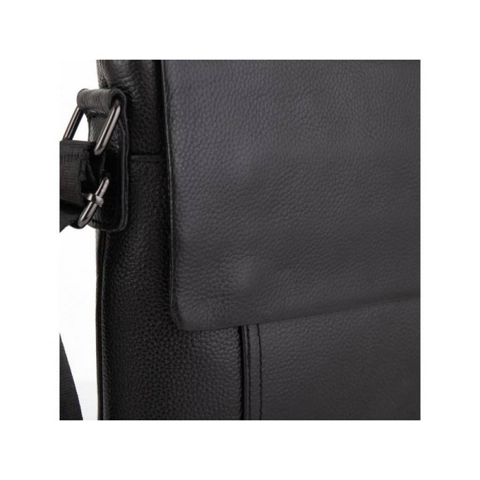 Классическая мужская кожаная сумка с зернистой текстурой. Она оснащена надежной металлической фурнитурой, наплечным ремнем, который регулируется по длине. Внутри сумки плотная коричневая подкладка. Мужская сумка имеет одно основное отделение на молнии, сверху оно закрывается клапаном на магнитах. С лицевой стороны под клапаном есть карман открытого типа, с тыльной стороны карман на молнии. Внутри сумки два маленьких кармана открытого типа и карман на молнии для мелочей.