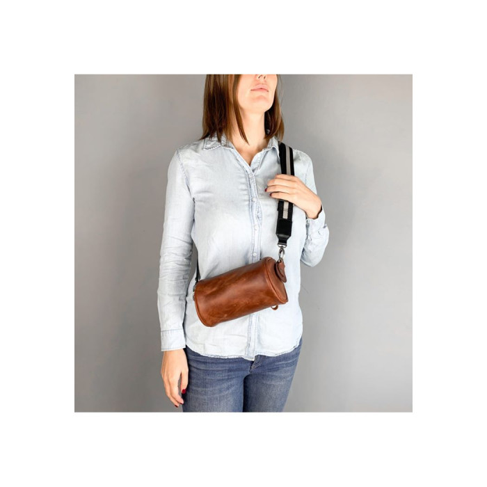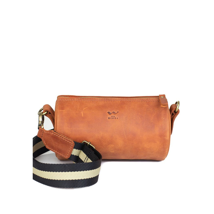 Кожаная сумка поясная-кроссбоди Cylinder светло-коричневая винтажная - TW-Cilindr-kon-crz The Wings