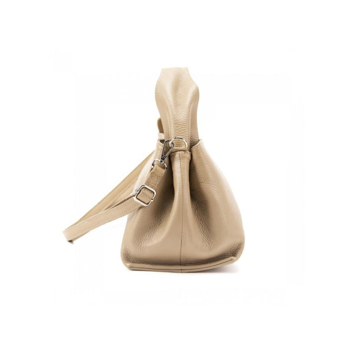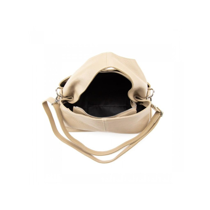 Внутри аксессуара есть маленький боковой карман на молнии. Сумочка имеет мягкую структуру, по бокам аккуратно собрана, что придает ей хорошую форму.