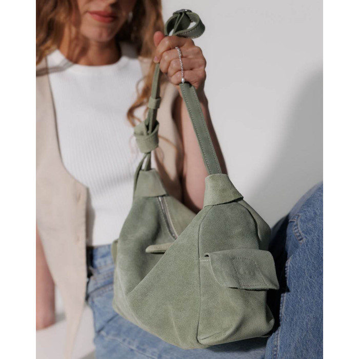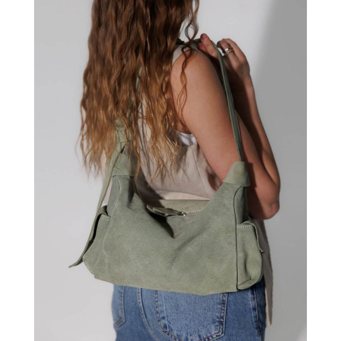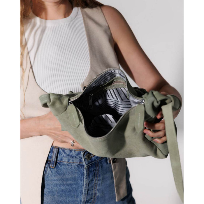 Сумка женская K70961, цвет светло оливковый, материал натуральная кожа. Сумка открывается молнией. Внутри сумка имеет один открытый карман.