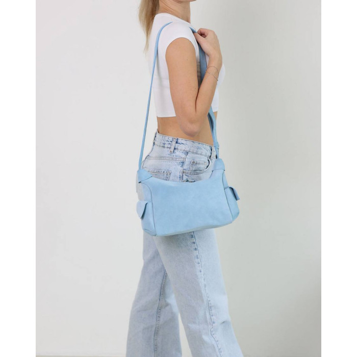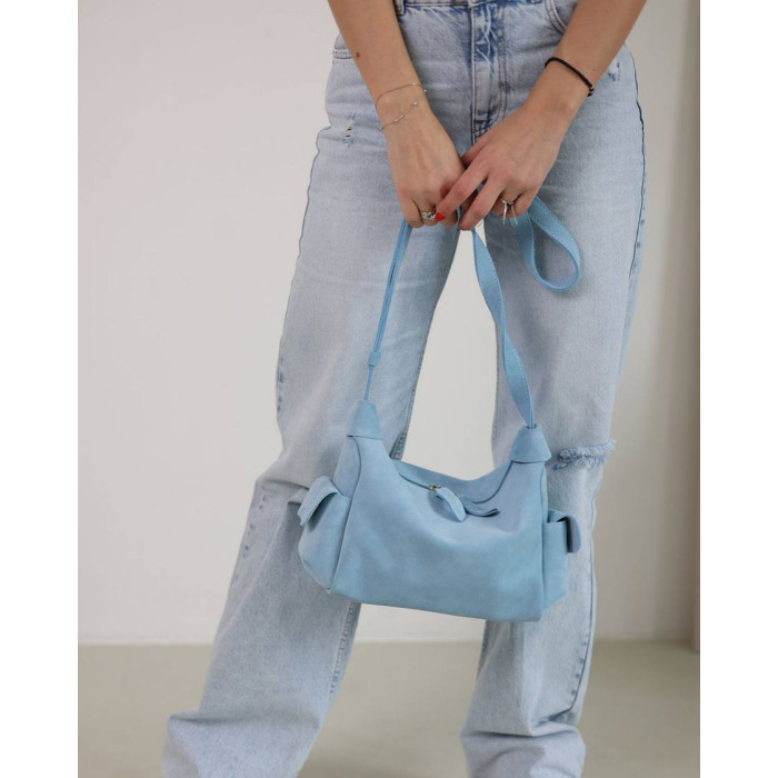 Сумка женская K70953, цвет голубой, материал натуральная кожа. Сумка открывается молнией. Внутри сумка имеет один открытый карман.