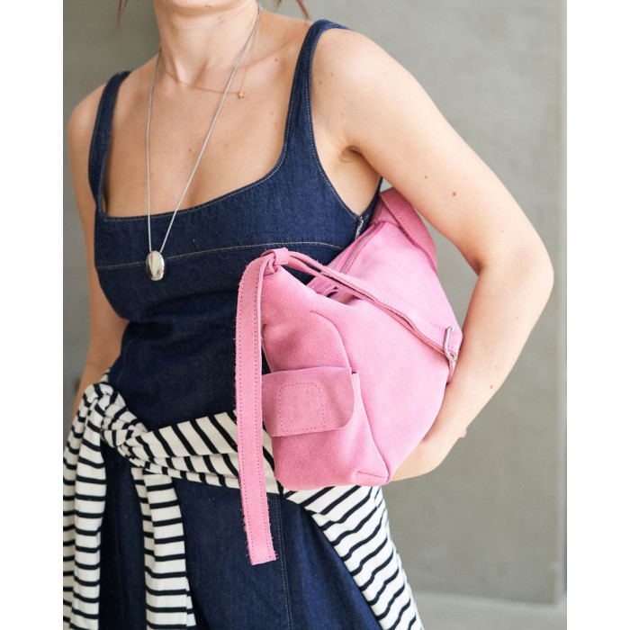 Сумка женская K70958, цвет розовый, материал натуральная кожа. Сумка открывается молнией. Внутри сумка имеет один открытый карман.