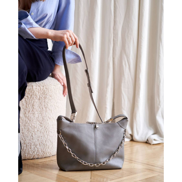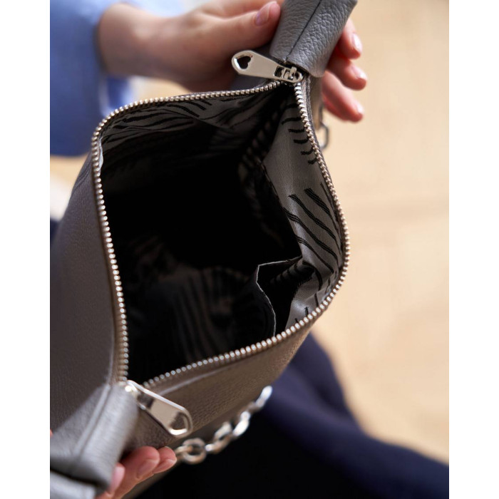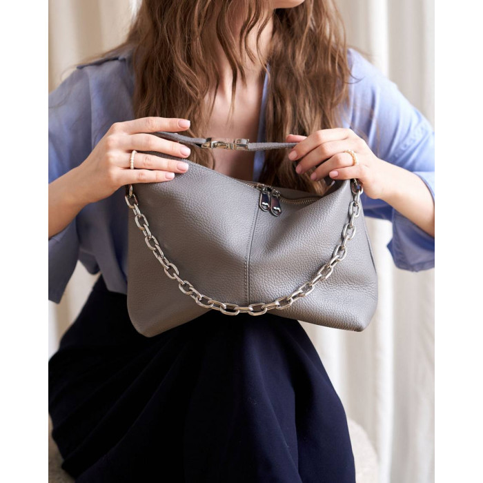 Сумка женская K70658, цвет серый, материал натуральная кожа. Сумка открывается молнией. Внутри сумка..