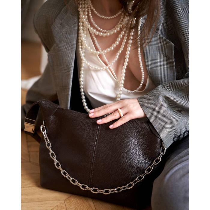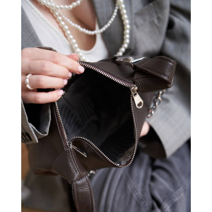 Сумка женская K70655, цвет шоколадный, материал натуральная кожа. Сумка открывается молнией. Внутри ..