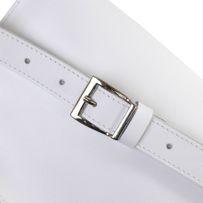 Превосходная женская сумка на пояс для повседневного использования или для путешествий. С такой сумкой Ваши руки будут свободны, а телефон и прочеи ценные вещи всегда при себе. Сделана бананка из натуральной кожи высокого класса и повышенной стойкости к износу. Цвет изделия – универсальный белый, фактура – гладкая и приятная на ощупь.