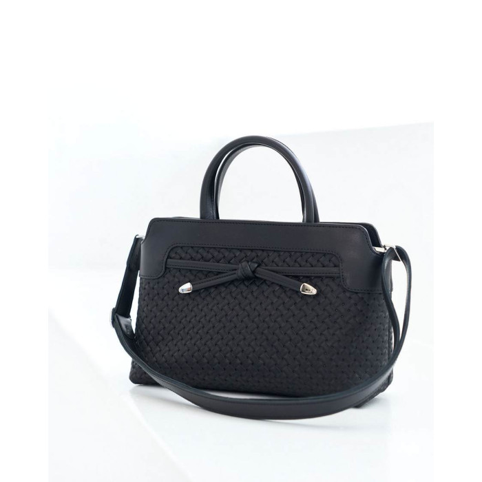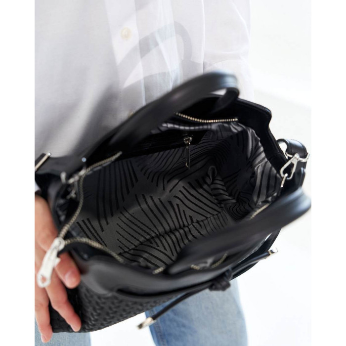 Сумка женская K73754, цвет черный, материал натуральная кожа. Сумка открывается молнией. Внутри сумка имеет один открытый карман и на змейке