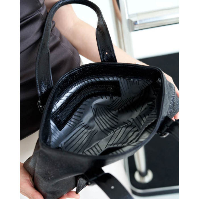 Сумка женская K7354, цвет черный, материал натуральная кожа. Сумка открывается молнией. Внутри сумка имеет один открытый карман и на змейке
