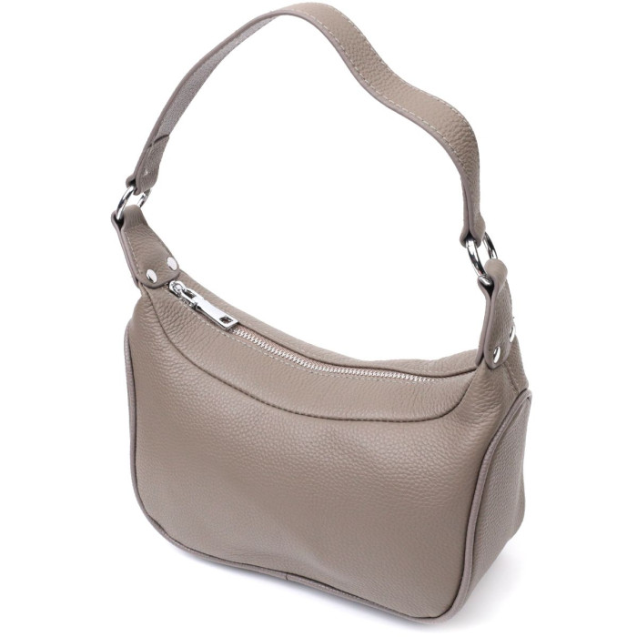 Практичная сумка из натуральной кожи с высоким показателем качества и износостойкости. Аксессуар состоит из одного отделения с потайным карманом на молнии внутри. Носить сумку можно в руке, на плече и через плечо, для этого имеется кожаный съемный ремень. В изделии использована качественная фурнитура цвета серебра. Отличная сумка которая придется по душе даже самым придирчивым модницам.