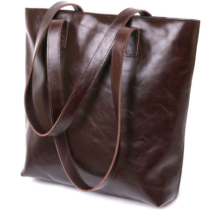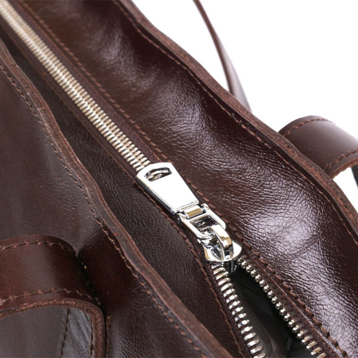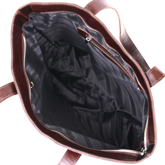 Вместительная женская сумка в красивом и стильном дизайне от украинского производителя. Материал изготовления – плотная натуральная высококачественная кожа с отменными показателями прочности и стойкости к износу. Внутри расположено просторное отделение, которое закрывается на молнию. Сумку можно носить в руке, на плече, на локте. Ручки сделаны также из натуральной кожи.