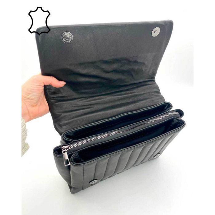 Кожаная женская сумка K6644 из натуральной овечьей кожи. Крышка сумки на магните. Внутри сумка на плотной подкладке, имеет три отделения, среднее отделение открывается при помощи молнии. Внутри имеется карман для мелких предметов.