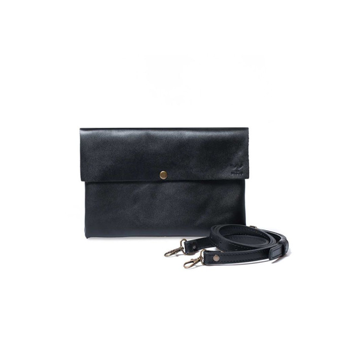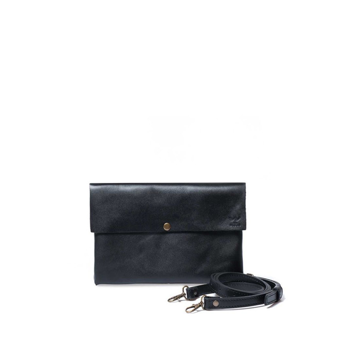 Кожаный клатч со съемной шлейкой черный - TW-Clatch-black-ksr The Wings