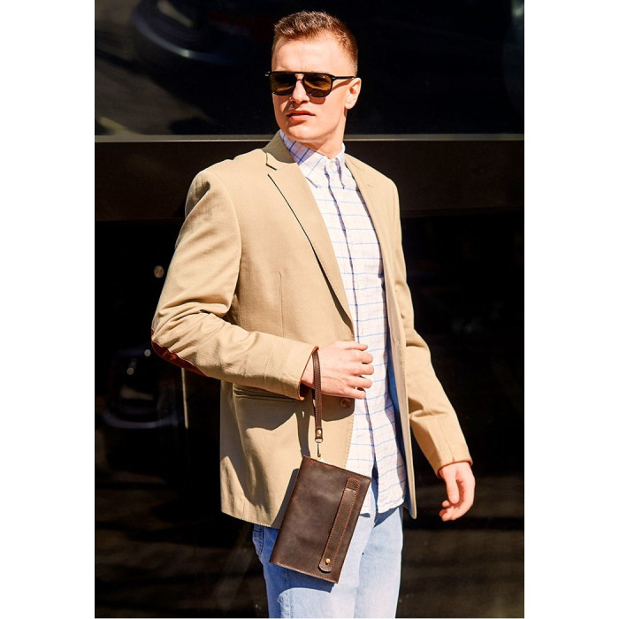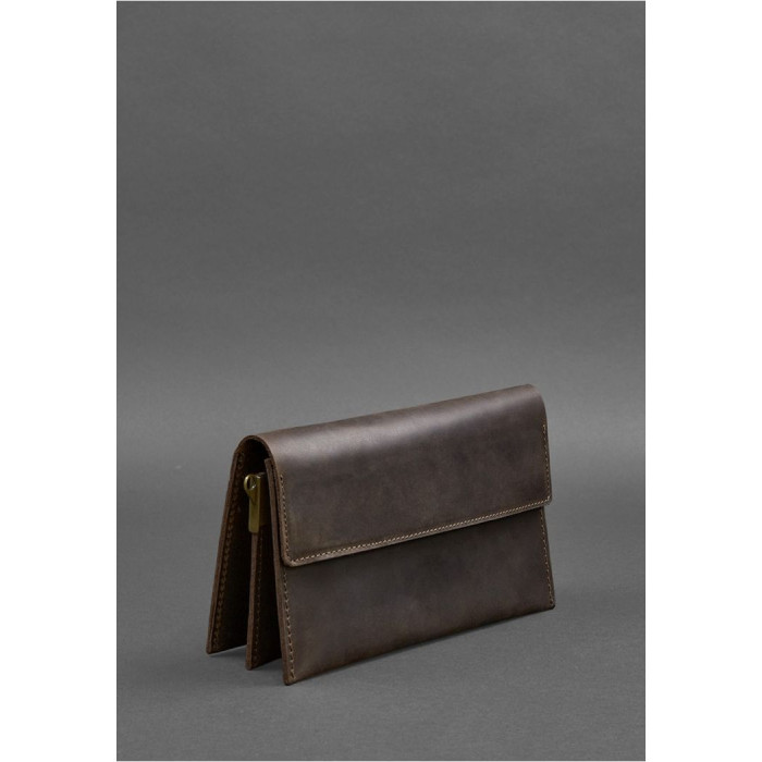 Элегантный и добротный клатч из плотной натуральной кожи понравится людям, которые ценят качественные и стильные вещи. Темно-коричневый цвет аксессуара в тандеме с винтажной натуральной кожей позволит легко сочетать клатч с деловым образом.