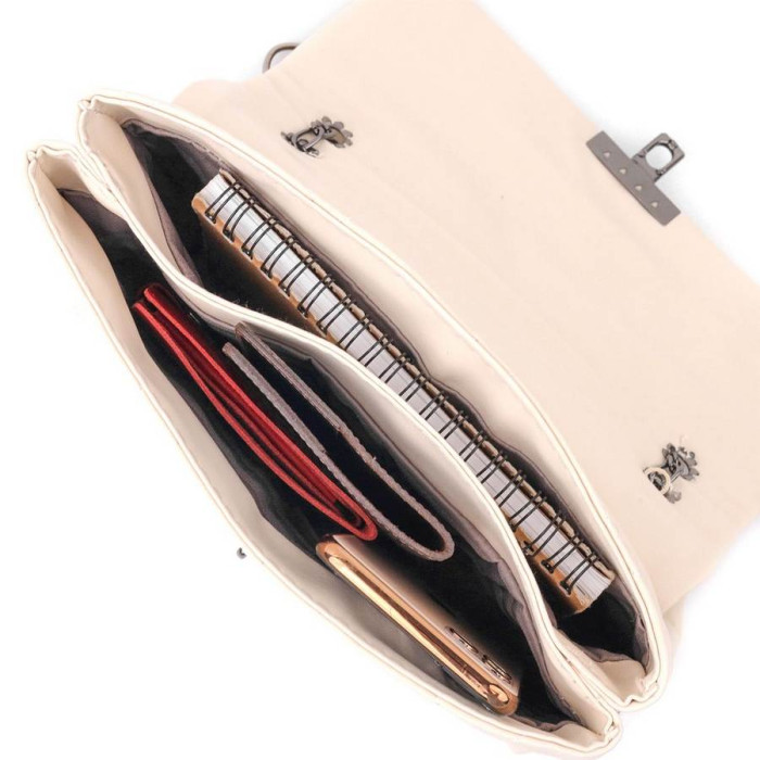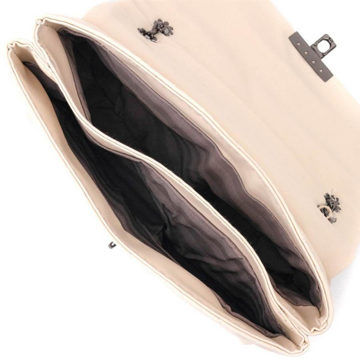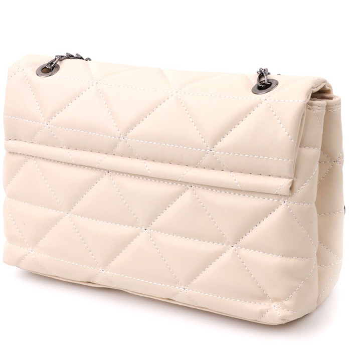 Чудесная сумка горизонтального типа в красивом бежевом цвете из мягкой и приятной на ощупь стеганной эко-кожи. Сумка имеет стильный дизайн. Аксессуар выглядит презентабельно и подойдет как под вечерний, так и повседневный образ. Фурнитура в сумке темное серебро, ремень на плече – сочетание цепочки и эко-кожи. Модель долгое время остается в идеальном состоянии, такую сумку приятно носить. Может быть отличным вариантом для подарка близкому человеку.