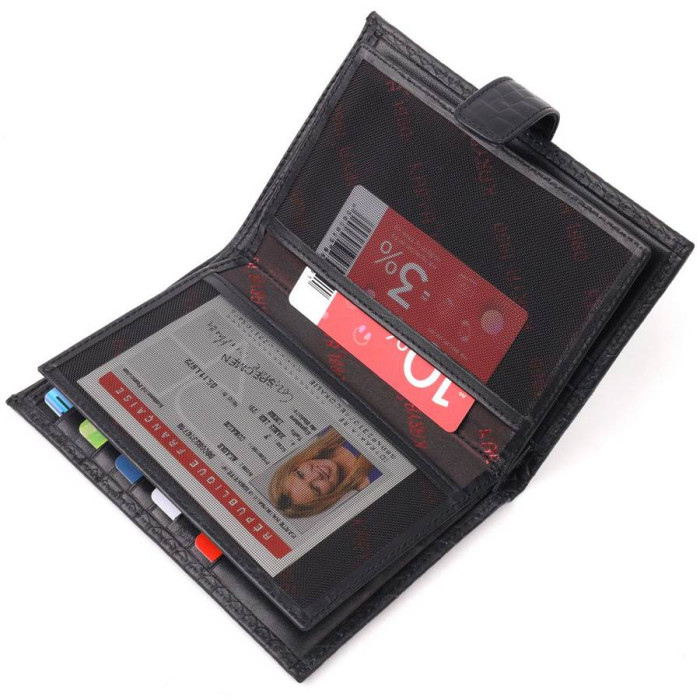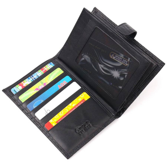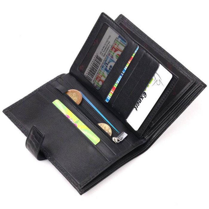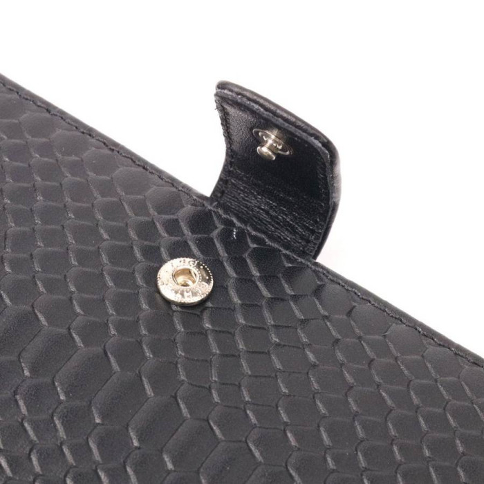 Красивый мужской кошелек из натуральной фактурной кожи, с тиснением под змею. Модель вертикального типа, складывается пополам и закрывается хлястиком на кнопку. Лаконичный дизайн, отлично ложится в руку, помещается в любую сумку. Аксессуар упакован в фирменную коробочку. Изделия из натуральной кожи всегда будут отличным подарком для близкого человека.
