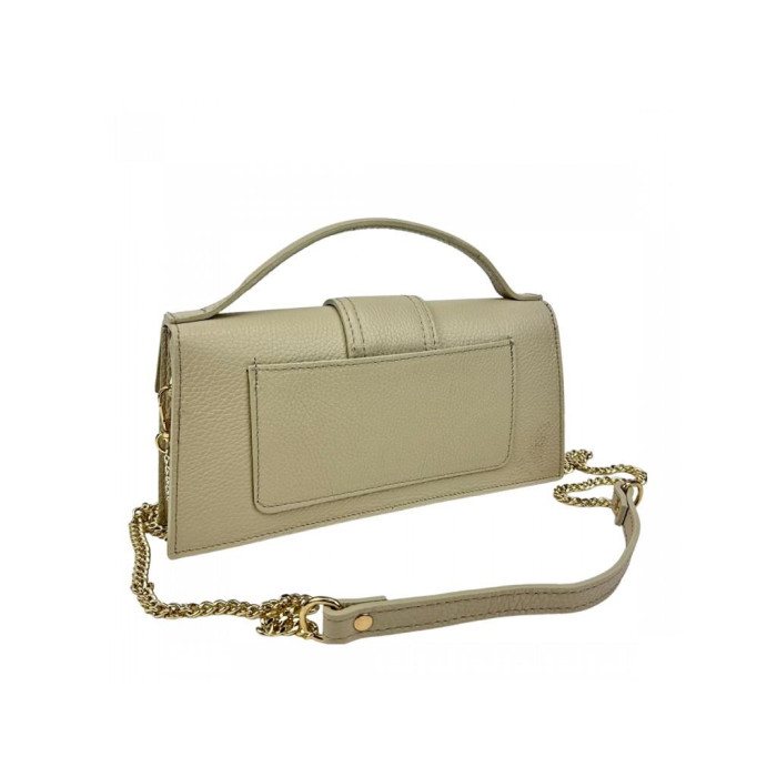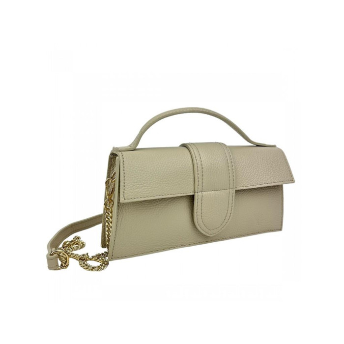 Плечевой ремень сочетает в себе цепочку и кожаный ремень, также удобная короткая ручка.