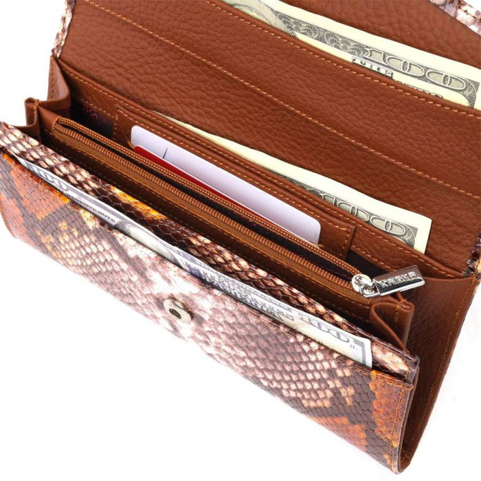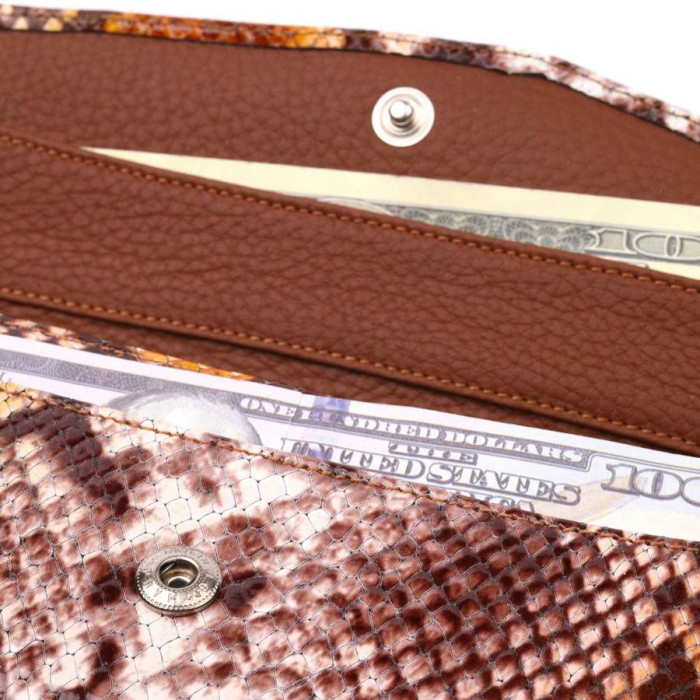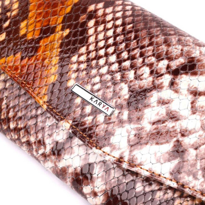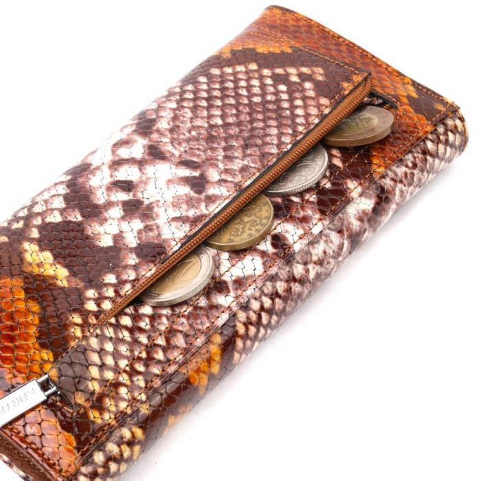Надежный женский кошелек из натуральной лакированной кожи, с тиснением под крокодила. Складывается аксессуар пополам, закрывается клапаном на кнопку. Качественная фурнитура дополняет и украшает изделие. Такой кошелек из натуральной кожи - это идеальный вариант на каждый день для тех, кто ценит качество, удобство и комфорт, а также будет отлично дополнять Ваш повседневный образ. Упакован аксессуар в фирменную коробку и пакет бренда. Изделия из натуральной кожи всегда будут отличным подарком для близкого человека.