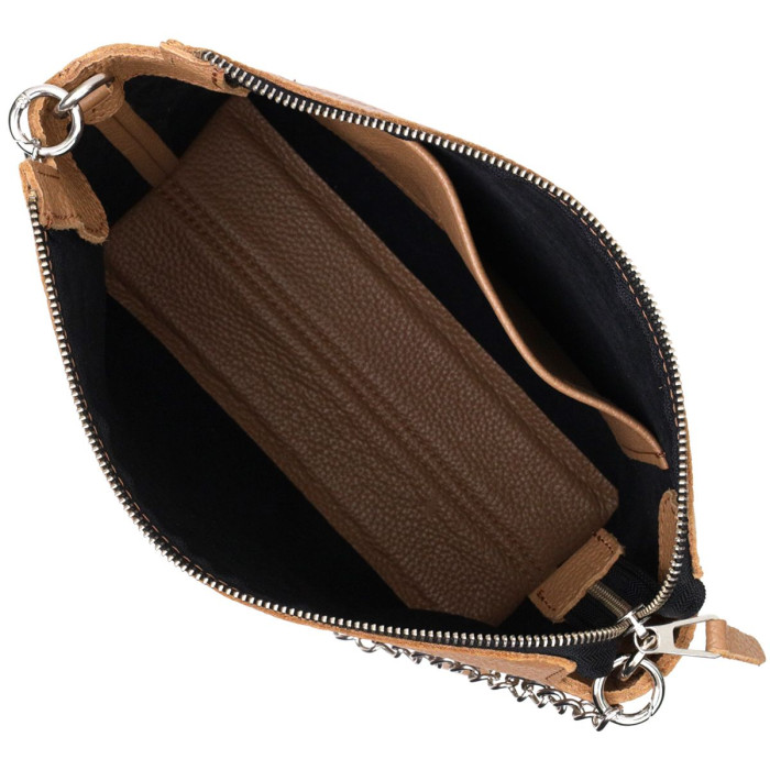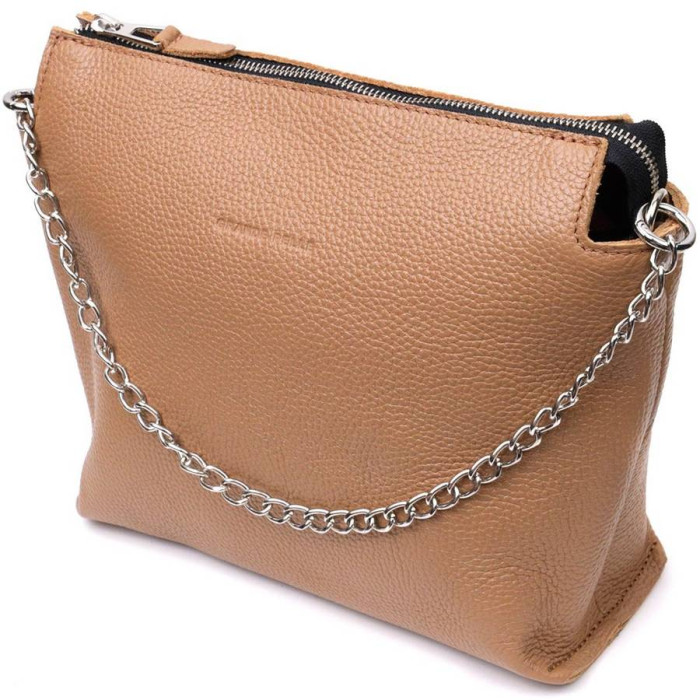 Оригинальная женская сумка из натуральной качественной кожи. Аксессуар состоит из основного отделения, что закрывается на молнию и кармана открытого типа внутри. Выполнена из прочной и износостойкой натуральной кожи. Носить данную сумку можно на плече при помощи регулируемого текстильного ремня, а также в руках при помощи съемного ремня-цепочки. Упакована данная сумка в красивый фирменный чехол с ручками.